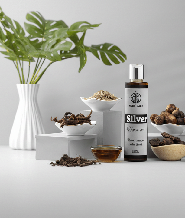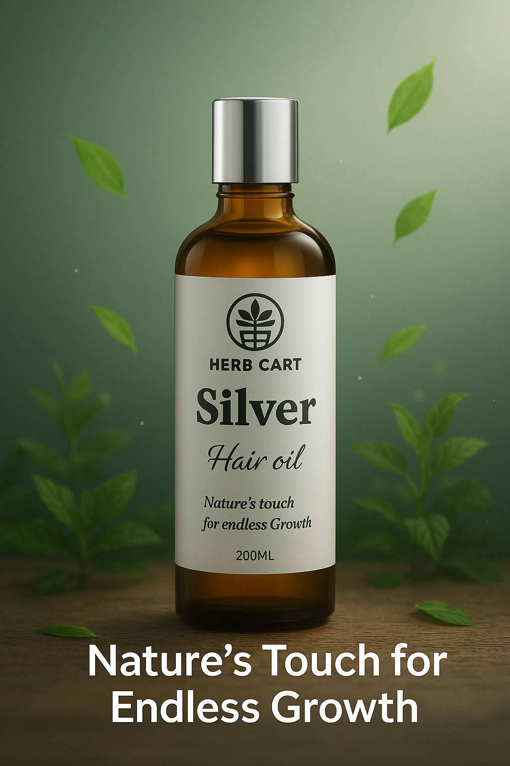 Reverse Premature Greying & Strengthen Hair Our traditionally crafted Silver Hair Oil is specially formulated with potent organic herbs to combat premature greying, reduce hair fall, and promote naturally dark, strong hair from the roots. Key Benefits Promotes thicker, healthier hair growth Nourishes scalp and prevents dandruff with natural antifungal properties