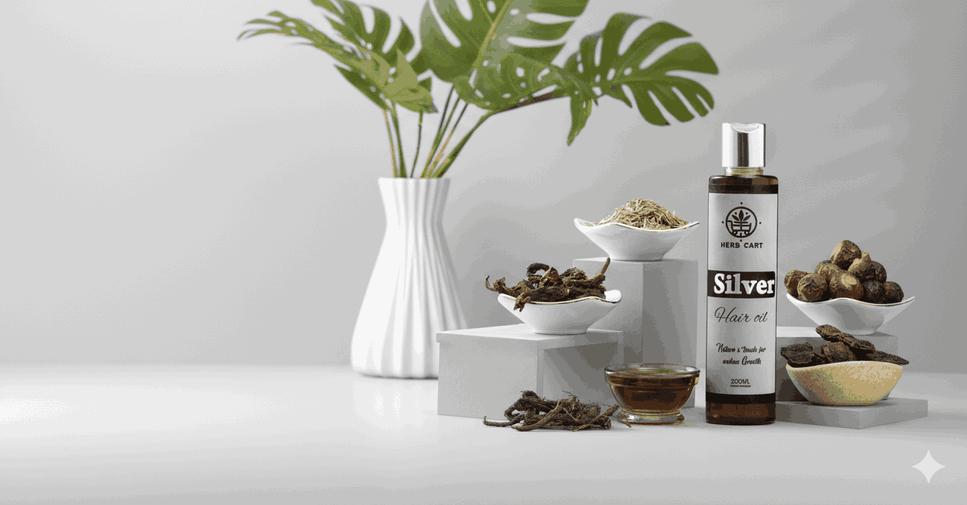 Reverse Premature Greying & Strengthen Hair Our traditionally crafted Silver Hair Oil is specially formulated with potent organic herbs to combat premature greying, reduce hair fall, and promote naturally dark, strong hair from the roots. Key Benefits Promotes thicker, healthier hair growth Nourishes scalp and prevents dandruff with natural antifungal properties